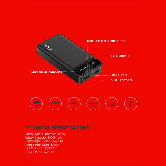 Dunns Mobile 20,000mAh power bank- black