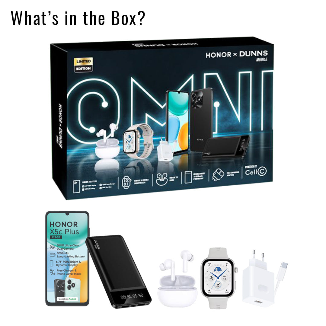 Upgrade your everyday with the Honor X5c Plus Boxset – a complete value-packed bundle designed to keep you powered, connected, and ready for anything.